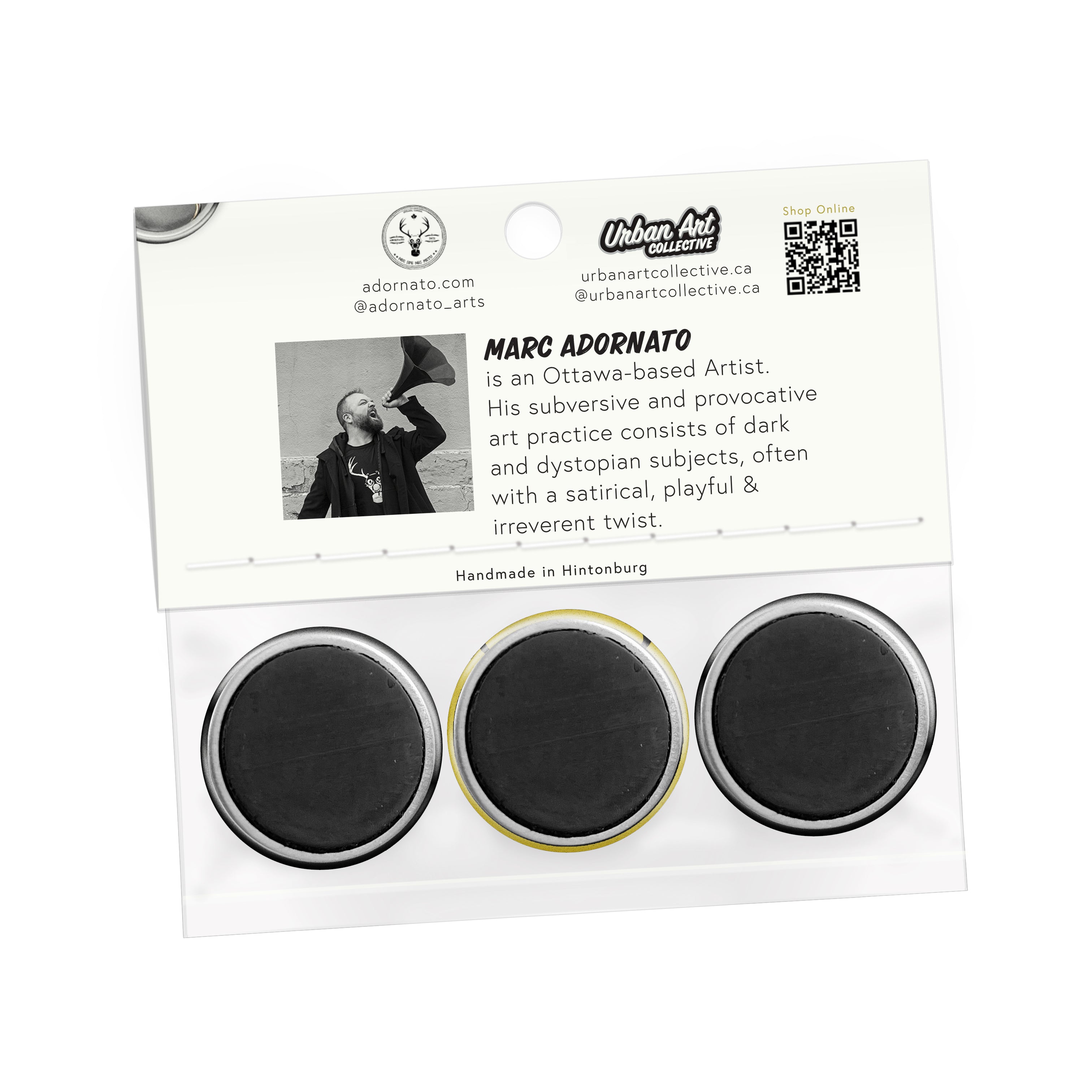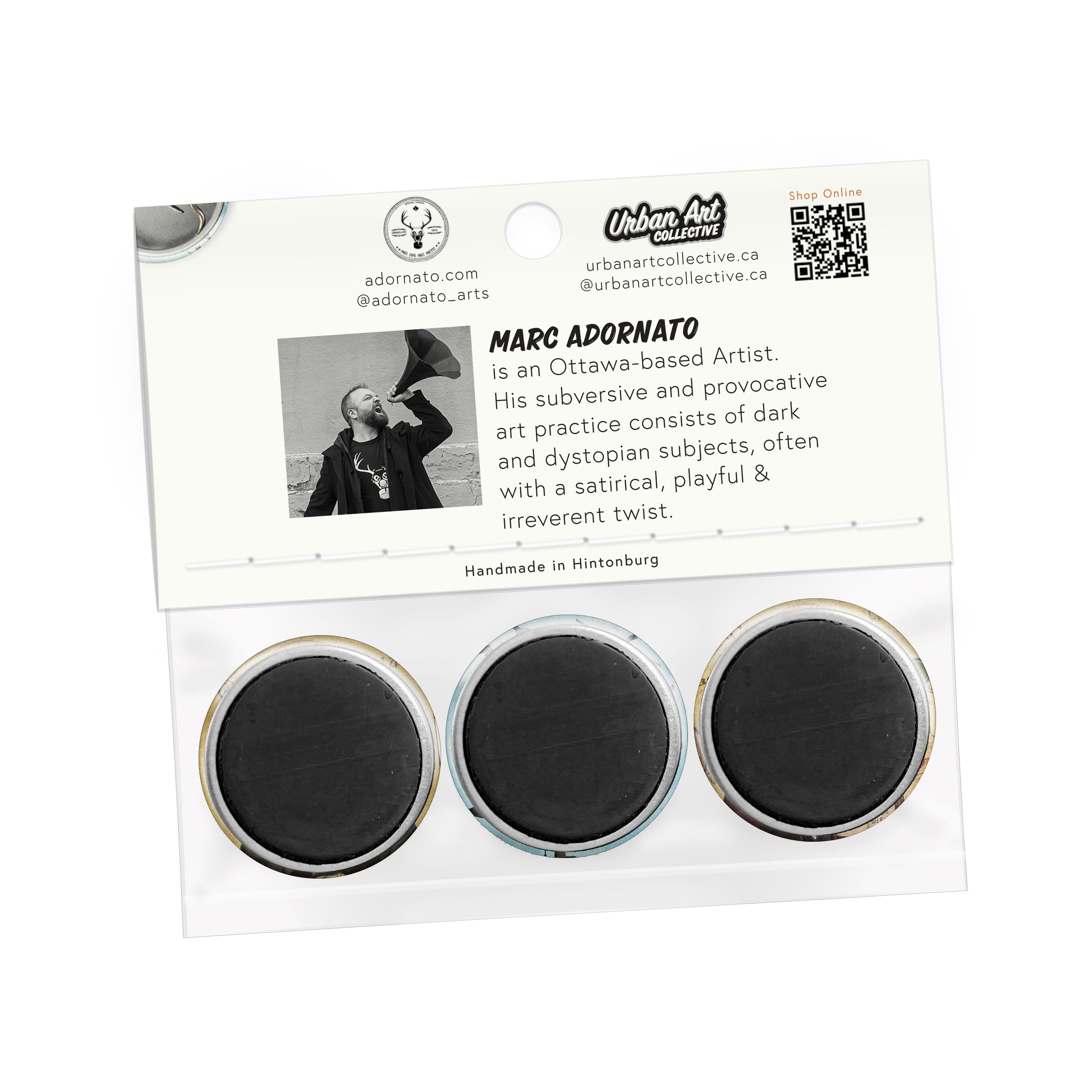 Adornato, is an Italian-Canadian contemporary artist based in Ottawa, Canada. His subversive and provocative art practice consists of dark and dystopian subjects, often with a satirical, playful and irreverent twist.