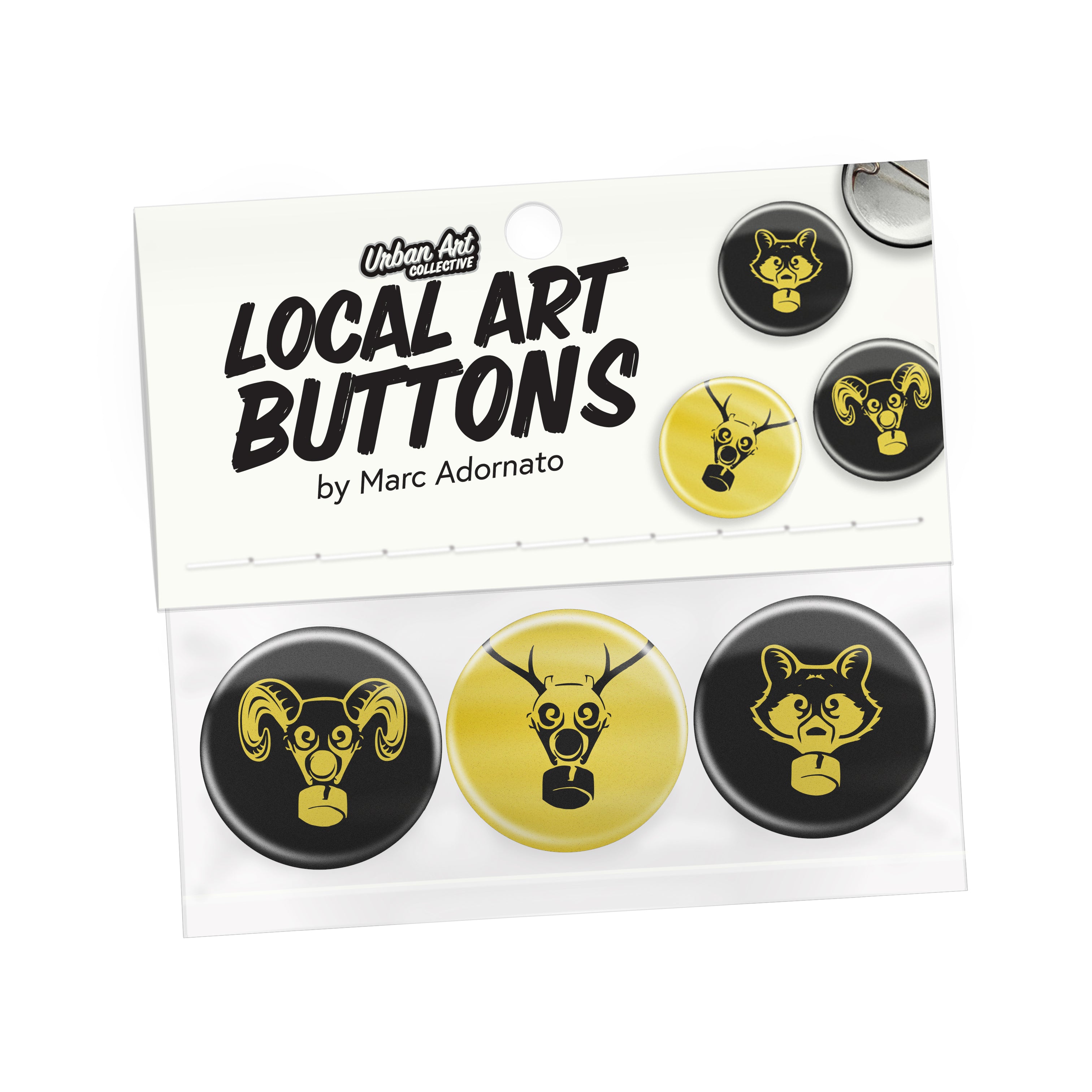1" Pinback Button: Raccoon Yellow